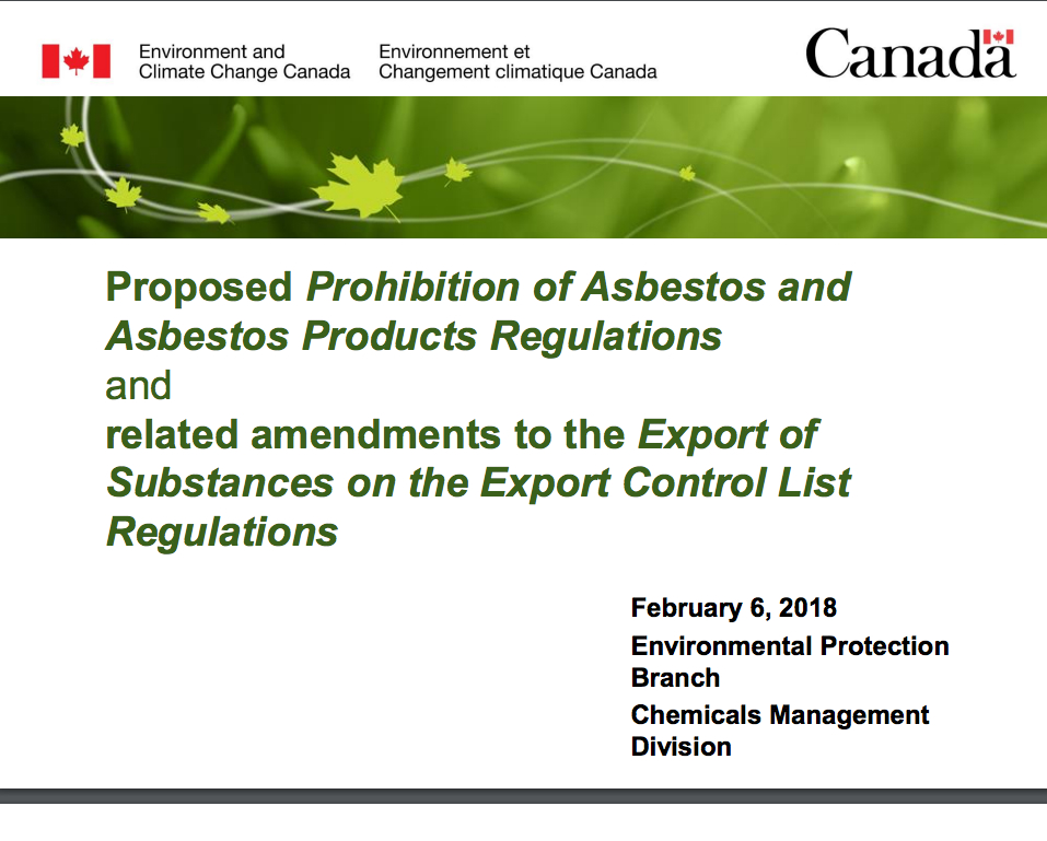 Chemicals Management Division Environment and Climate Change Canada, ec.amiante-asbestos.ec@canada.ca.
