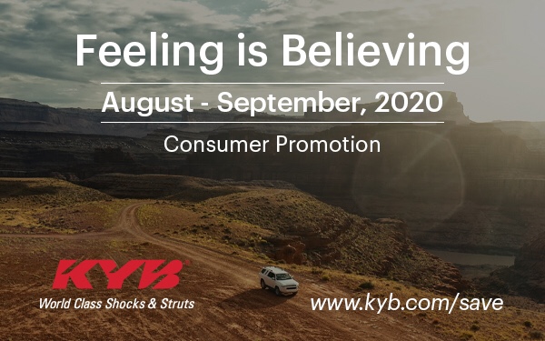 KYB’s popular consumer rebate promotion, “Feeling is Believing,” will begin August 1st and run through the end of September.